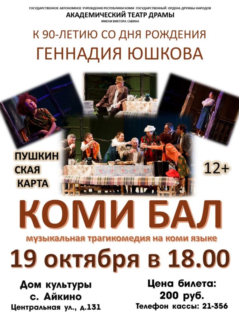 Уже завтра на сцене Дома культуры села Айкино встречайте труппу Театра драмы им. В. Савина с трагикомедией Геннадия Юшкова «Коми бал» (12+). Жители Усть-Вымского района увидят простую человеческую историю, услышат добрый юмор, ставшие народными песни Геннадия Юшкова на музыку Василия Гущина и …