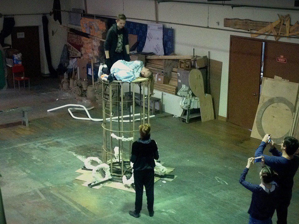 Вот, например, артисты репетируют в художественном цехе
