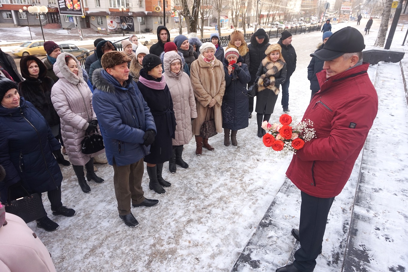 Коллектив Академического театра драмы имени В. Савина почтил память великого земляка возложением цветов к подножию памятника.