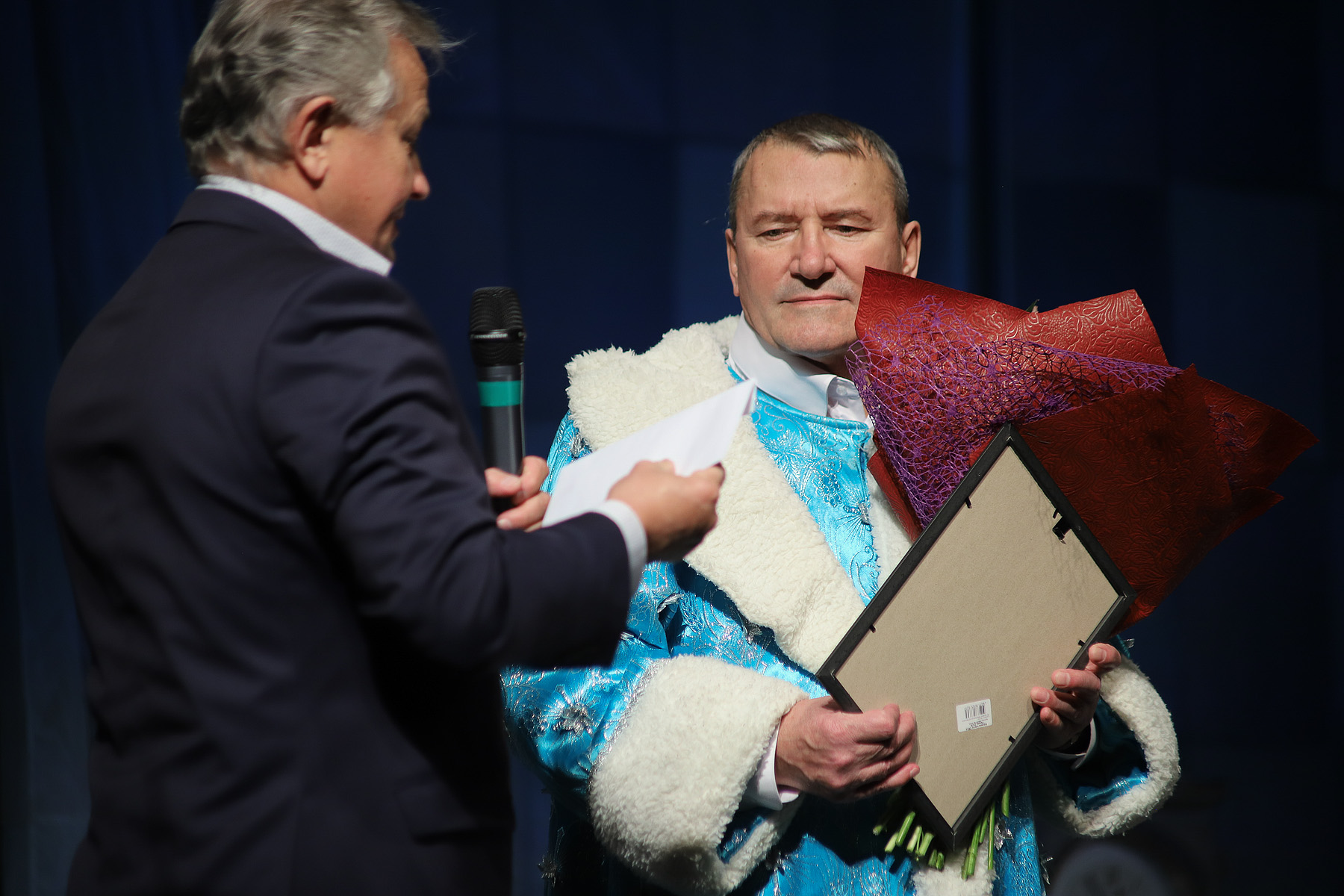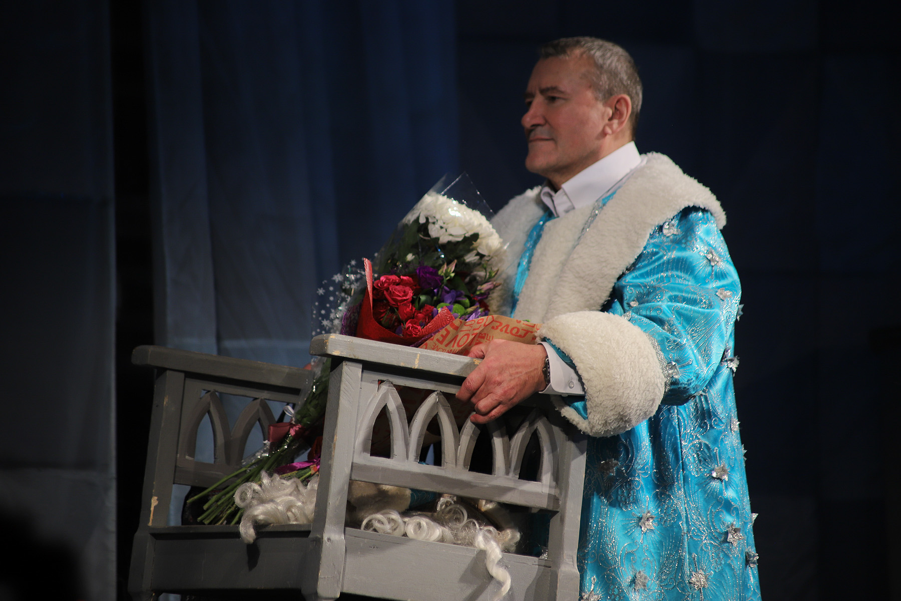 — Это уникальный актер, который уже 25 лет представляет на этой сцене самые разные образы, но всегда его герои – это молодые, энергичные и сильные мужчины. Таким он был и в сегодняшнем спектакле. Замечательный актер, вызывающий восхищение и любовь зрителей. Сегодня желаем вам как творческому человеку, чтобы было здоровье, новые роли и чтобы вы по-прежнему радовали нас своими работами, — обратился к юбиляру Михаил Матвеев.