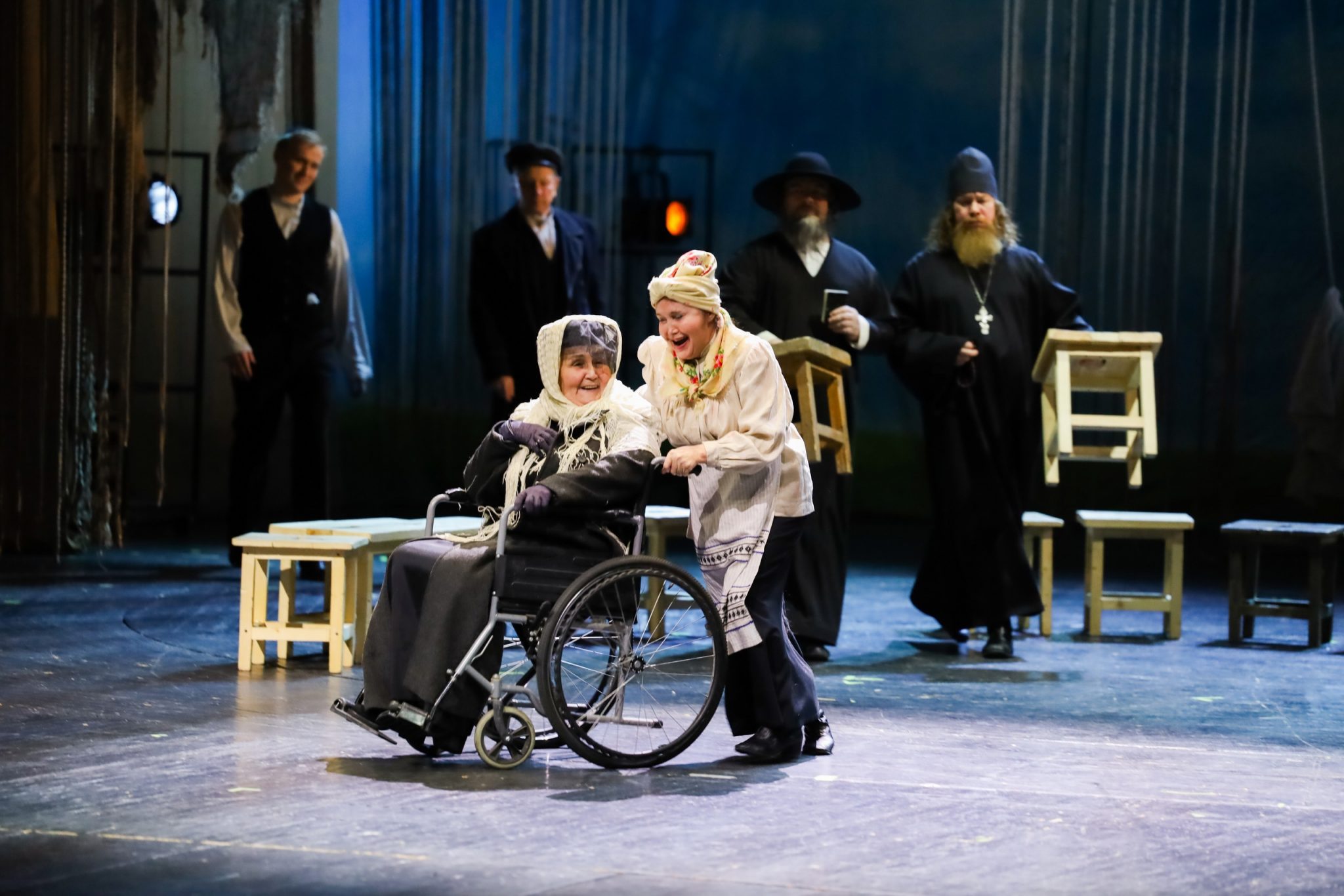 Отдельные поздравления — актрисам Марии Чукаревой и Веронике Калуге — с премьерой! Мария Чукарева впервые вышла на сцену в роли Матери Менахема, Вероника Калуга сыграла Девушку-революционерку.