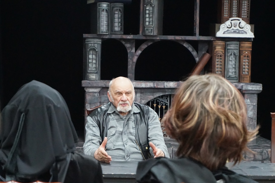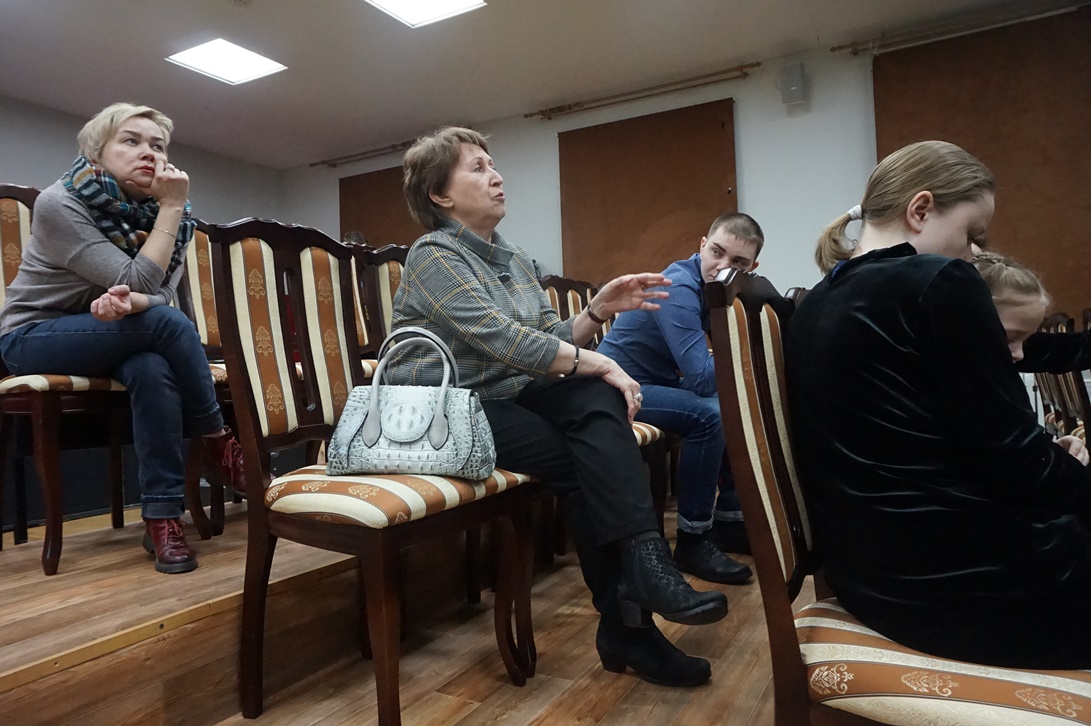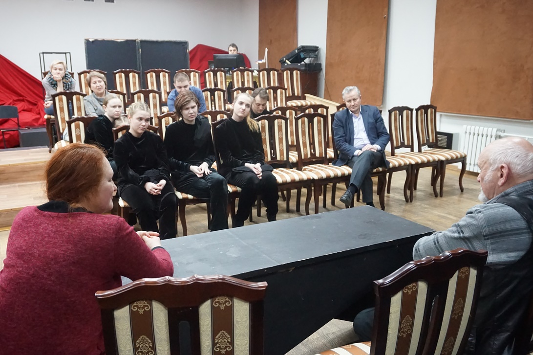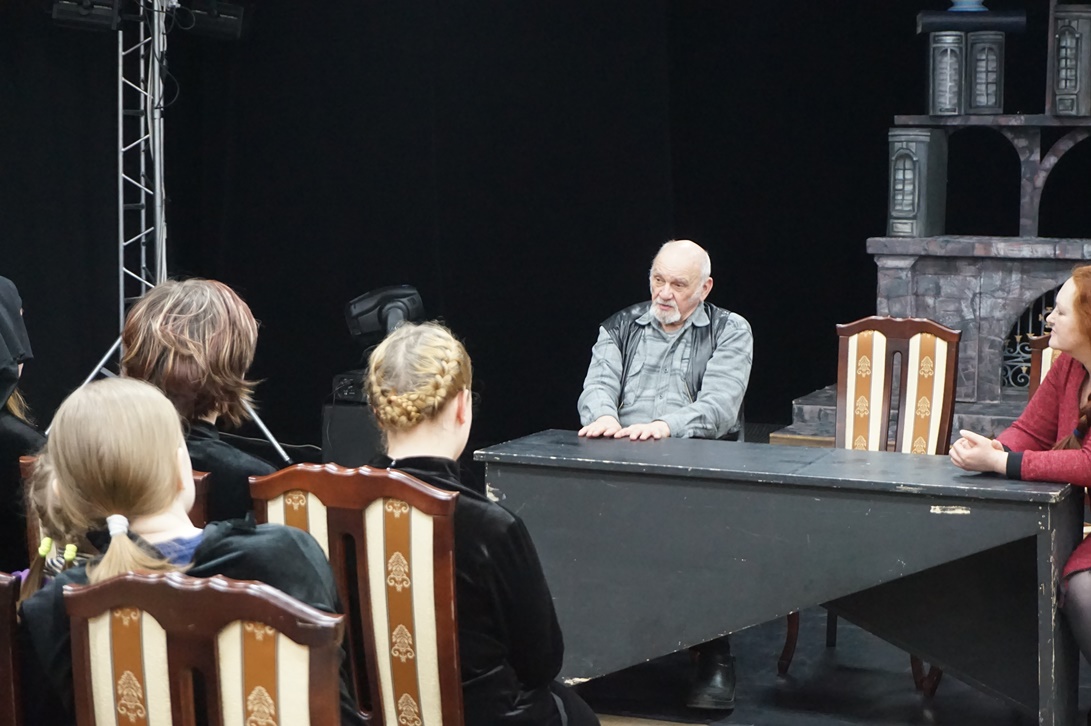 После того, как мастер посмотрел постановку «Черная курица», в малом зале театра им. Савина состоялась встреча-беседа режиссера с актерами и студентами. В начале разговора Николай Наумов отметил художественное решение, которое легло в основу спектакля – все события повести будто бы происходят во сне главного героя, мальчика Алеши.