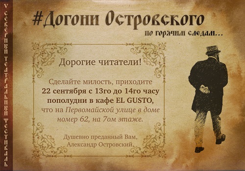 В ближайшие дни Островского можно будет встретить на улицах города и в кафе. О месте и времени появления драматурга мы сообщаем в нашей группе ВКонтакте.