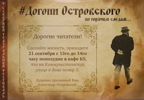 Сегодня стартовал новый проект, приуроченный к V Северному театральному фестивалю и посвященный 200-летию со дня рождения Александра Островского — «Догони Островского».