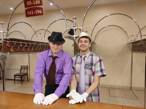 Накануне Дмитрий и Илья произнесли клятву театрального гардеробщика. Заместитель директора Владимир Казаковцев провёл инструктаж для артистов: рассказал о работе театрального гардеробщика, выдал ребятам перчатки и бейджи.