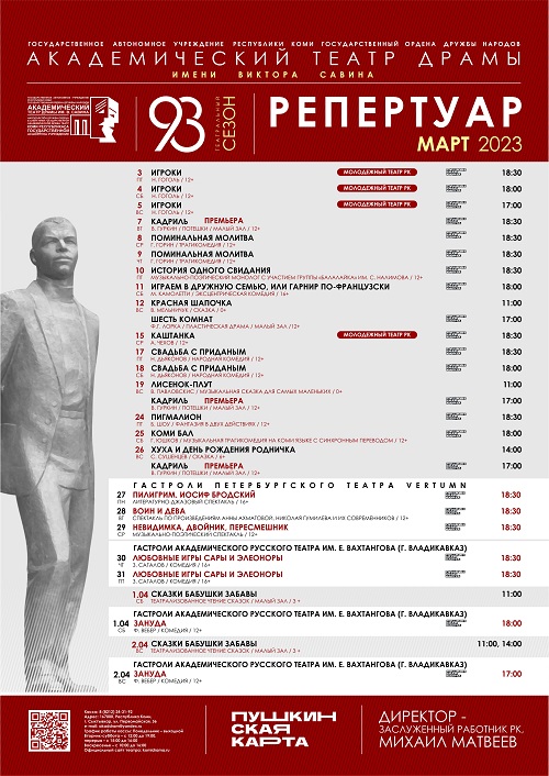 Зрители северных городов республики увидят спектакли Театра им. В. Савина