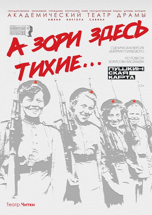 С 19 по 23 апреля театрализованную читку сценической версии повести Бориса Васильева «А зори здесь тихие…» увидят зрители Печорского, Сосногорского, Ухтинского и Княжпогостского районов Коми. Гастроли театра приурочены к годовщине Великой Победы. — На гастролях в районах республики мы бываем …
