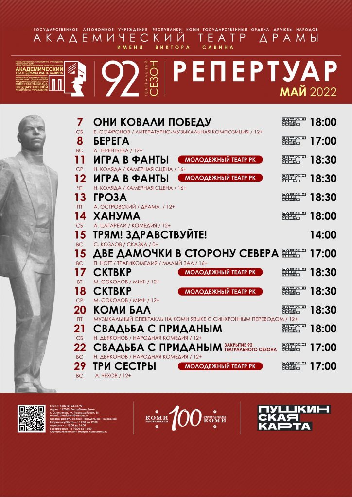 7 мая на сцене театра драмы состоится премьера литературно-музыкальной композиции «Они ковали Победу» (12+). Спектакль основан на реальных историях участников Великой Отечественной войны, тружеников тыла, узников концентрационных лагерей. Приглашаем вас, дорогие зрители, к 16.30 в музей театра на встречу с …