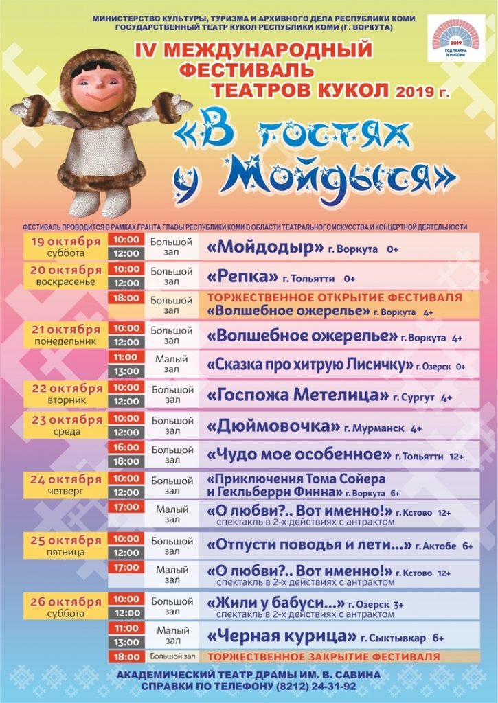 с 19 по 26 октября приглашаем детей и взрослых в волшебный мир кукольных сказок «В гостях у Мойдыся». Ребята смогут посмотреть захватывающее и поучительное приключение неряшливого мальчугана («Мойдодыр» 0+), кукольный мюзикл о об одной забавной семейке, которая взявшись за дело …