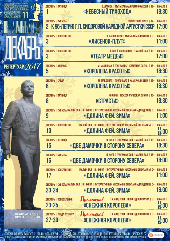 Уважаемые зрители! Обращаем ваше внимание: 4 ноября (суббота) и 5 ноября (воскресенье) касса театра работает с 10:00 до 16:00.