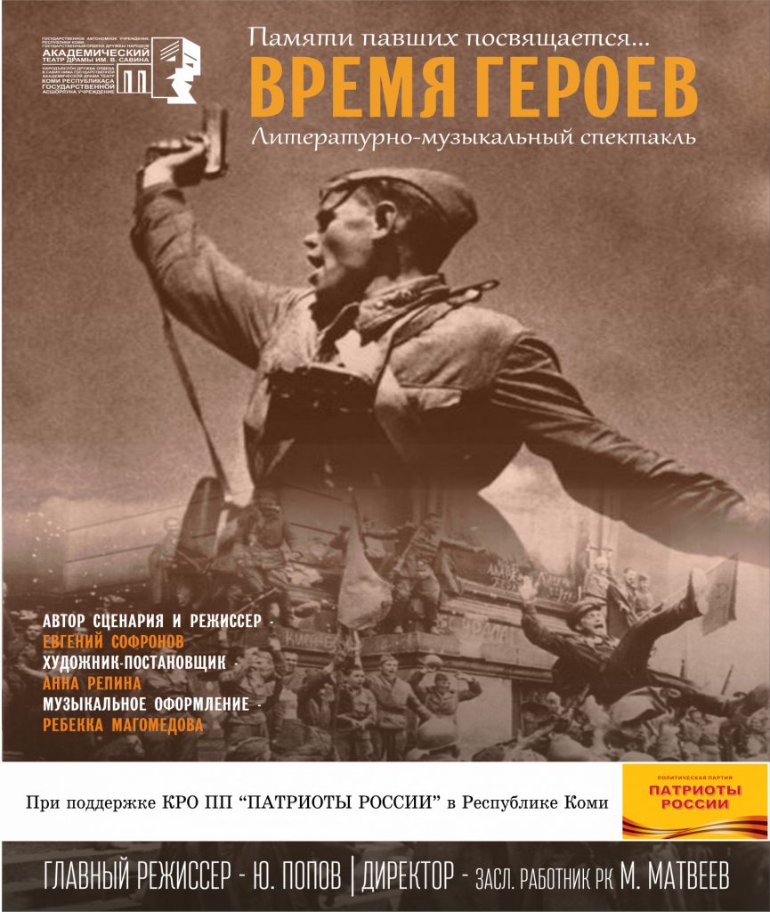 Литературно-музыкальный спектакль Академического театра драмы им. В. Савина «Время героев» посвящен малоизвестным страницам Великой Отечественной войны. В спектакле звучат воспоминания фронтовиков, стихи о войне и, конечно же, песни тех лет. Спектакль рассчитан на широкую зрительскую аудиторию, а особенно рекомендован подрастающему …