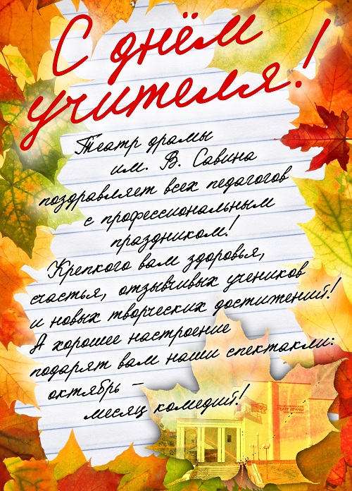 12, 13 и 14 октября спектакль театра увидят жители Микуни, Жешарта и Объячево. В гастрольной афише любимая зрителями комедия «Ханума» и спектакли для детей «Лисенок-плут» и «Вождь краснокожих». А в это время на сцене театра драмы им. В. Савина продолжаются …